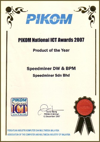 Speedminer Sdn. Bhd. is proud to announce that our product, Speedminer DW & BPM has emerged WINNER in the Best of Applications and Infrastructure Tools, category of the MSC Asia Pacific ICT Awards 2006.